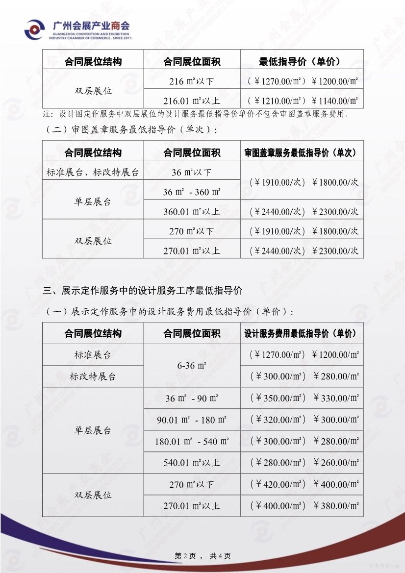 展览展示经营服务行业指导价(2024)第2页、共4页