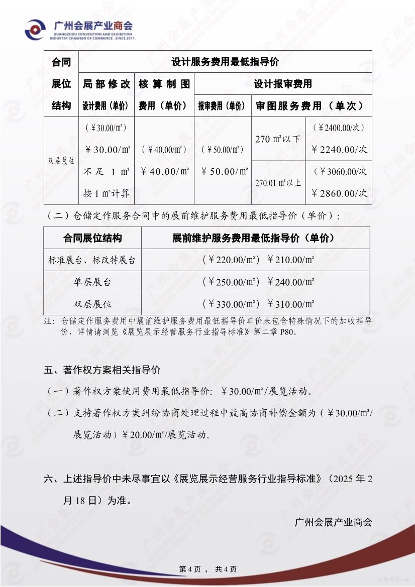 展览展示经营服务行业指导价(2025)第4页、共4页