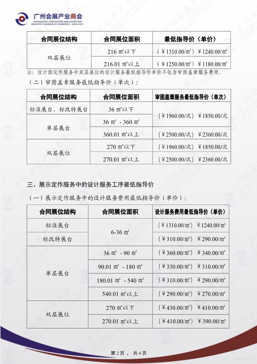 展览展示经营服务行业指导价(2025)第2页、共4页