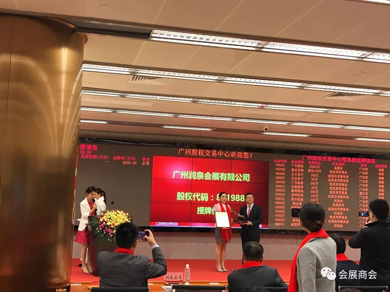 热烈祝贺润泉会展成功挂牌,股权代码:8919882018年01月08日是个大喜的日子,广州润泉会展有限公司正式挂牌上市,挂牌代码891988。这是润泉会展发展史上的重要里程碑,预示着润泉会展发展自此掀开崭新的一页。润泉会展董事长何韵女士,来自全国的合作伙伴,公司管理层及中介机构代表等嘉宾出席了上市仪式。 据悉,润泉会展目前已经发展成为一家是专业主办、承办、合作联办各类大中型博览会及会展服务咨询、展览会开幕式、主场服务等文化创意事业的专业展览公司,集策划、设计、多媒体数字影片、施工、运营于一体的一站式服务企业;具有丰富的策划、设计经验及精湛的建造技术。 公司虽然成立不久,但其秉承润泉会展的“泉会品牌·润展亚洲”的互联网发展思维,以及全力以赴打造一个永不落幕的会展服务生态系统的理念。致力于打造一个大系统运营,小组织经营的全国乃至全亚洲的营销体系,并依互联网跨境服务平台,以及在当地政府的带领下,不断扩大其在行业的影响力,保持行业领先地位。 润泉会展坚信会展生态系统发展前景光明,传统会展业的竞争白热化,市场需要规范和创新相结合已成为必然。 在润泉会展迎来新的发展机遇的时候,公司将更加专注,专业的去做好运营的智能化、精细化,多样化。以全心全意服务好全国的一、二线会展城市合伙人为基石,服务更多顾客的理念加快调整布局,围绕以资本、人才、创新,并购四大核心的发展战略,借助资本市场的力量,整合资源,厚积薄发。 我们相信润泉会展在广州股权交易所上市后,发展一定会越来越好,也一定会给合作伙伴们带来更多的惊喜。