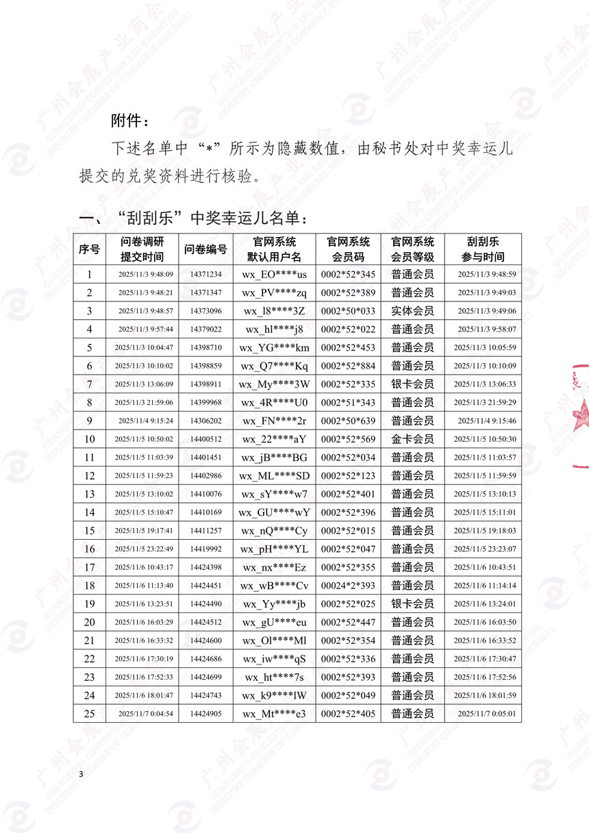 附件:“刮刮乐”中奖幸运儿名单 广州会展产业商会 2025年11月19日
