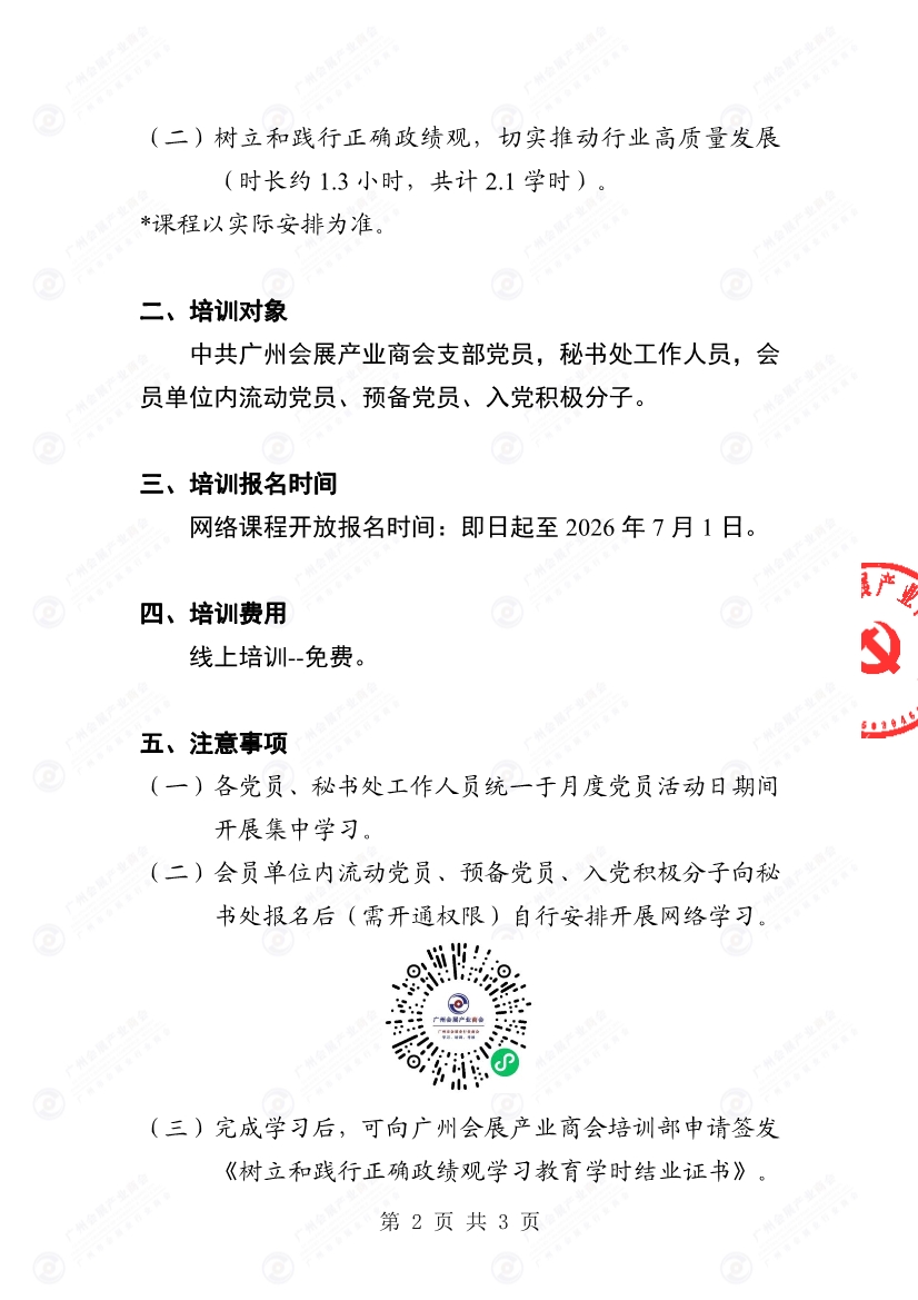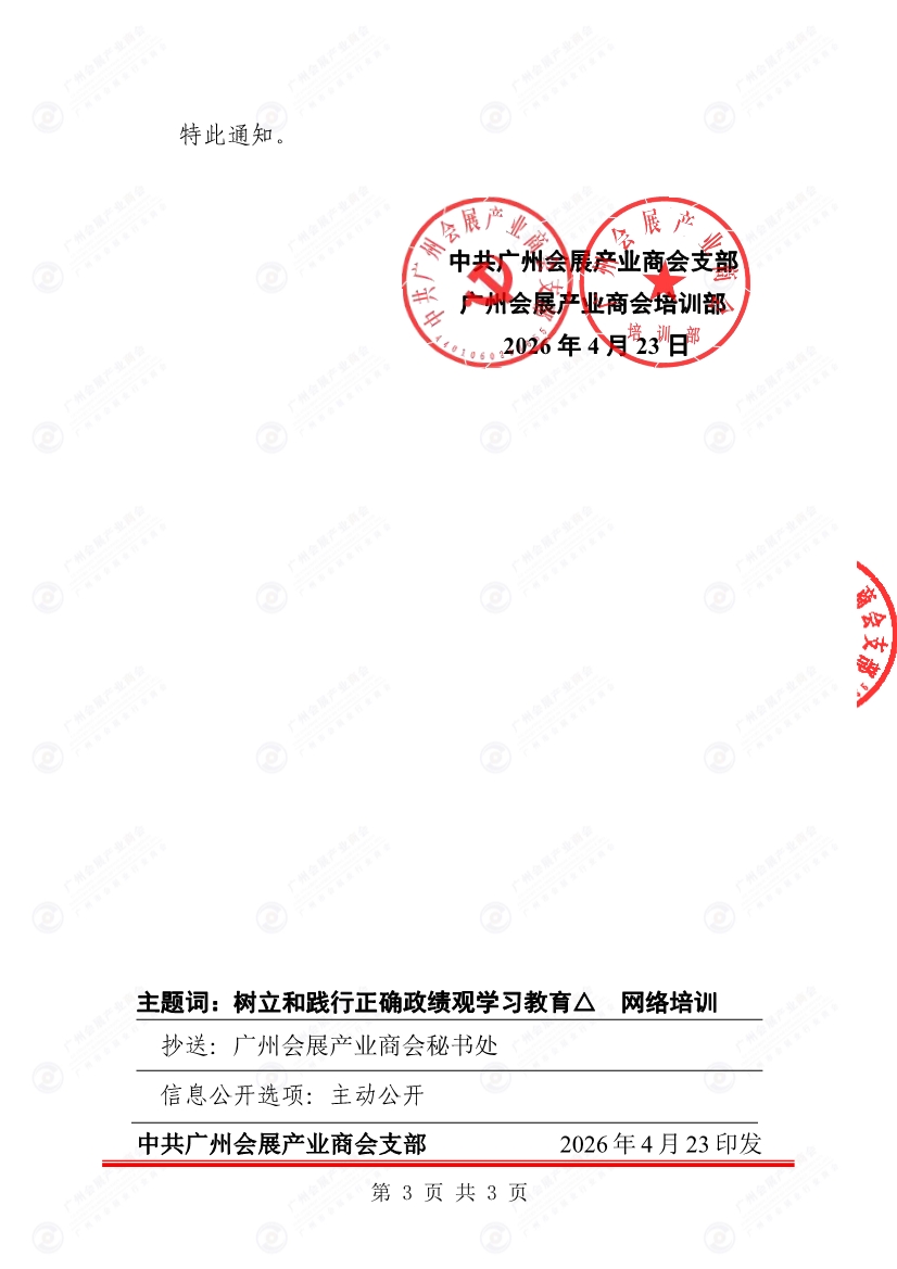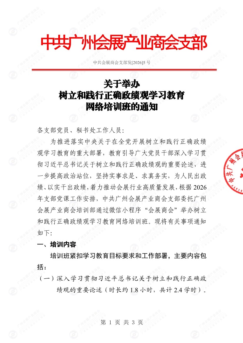 关于举办树立和践行正确政绩观学习教育网络培训班的通知(中共会展商会支部发[2026]5号)